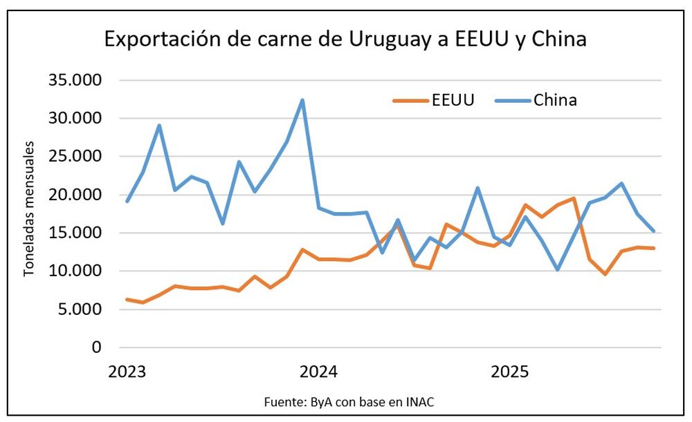 La Unión Europea es el destino que más creció en 2025 con 43,6% más de importaciones desde Uruguay, de 45 mil a 65 mil toneladas hasta la última semana. Y el que más paga, por encima de US$ 7 mil la tonelada. En 2025 las importaciones de Europa en todos los mercados serán las más altas desde 2019, con un total de 400 mil toneladas, casi el 20% procedentes de Uruguay.