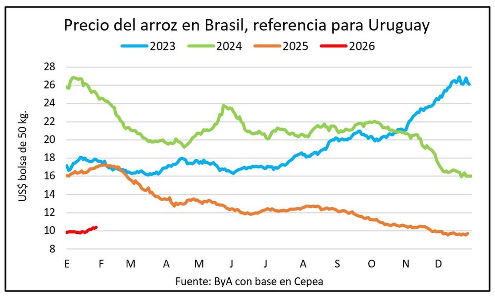 El arroz en Brasil se mantuvo por encima de los US$ 10 por bolsa, sostenido por la conversión a dólares y estable en reales.
