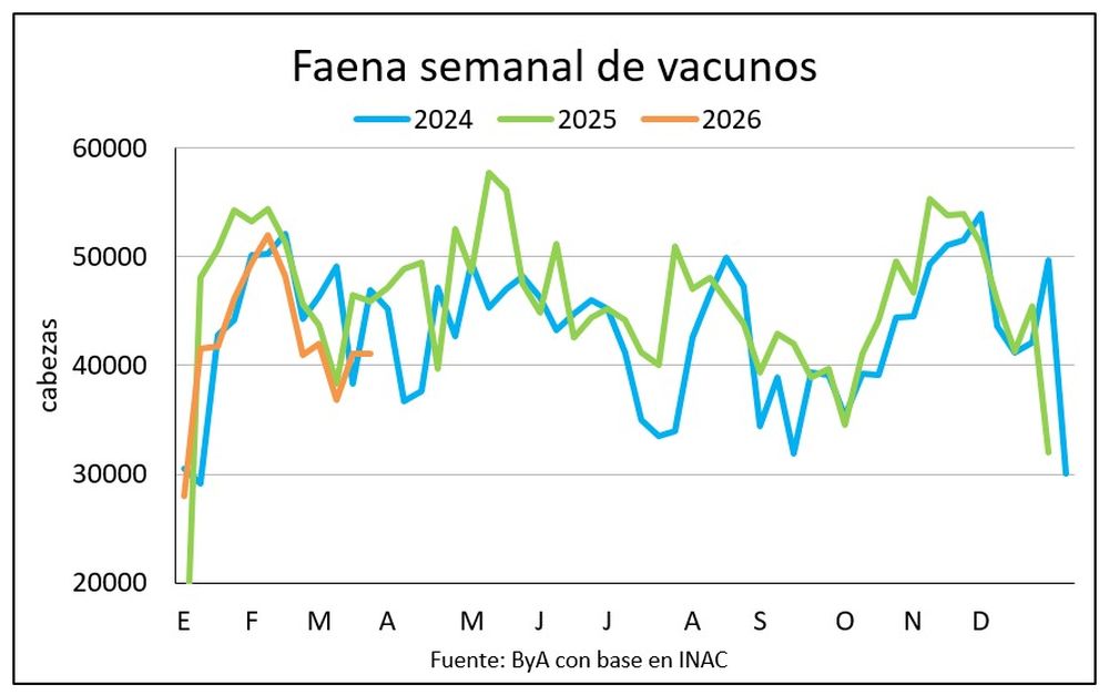 Faena de vacunos apenas sobre las 41.000 cabezas