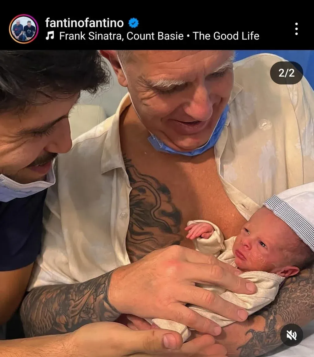 En el posteo se puede ver, además, dos fotografías del presentador junto al recién nacido y a Nahuel, todavía en la clínica donde dio a luz su esposa. En las imágenes se los ve sonrientes y felices, tal y como reza en sus palabras.