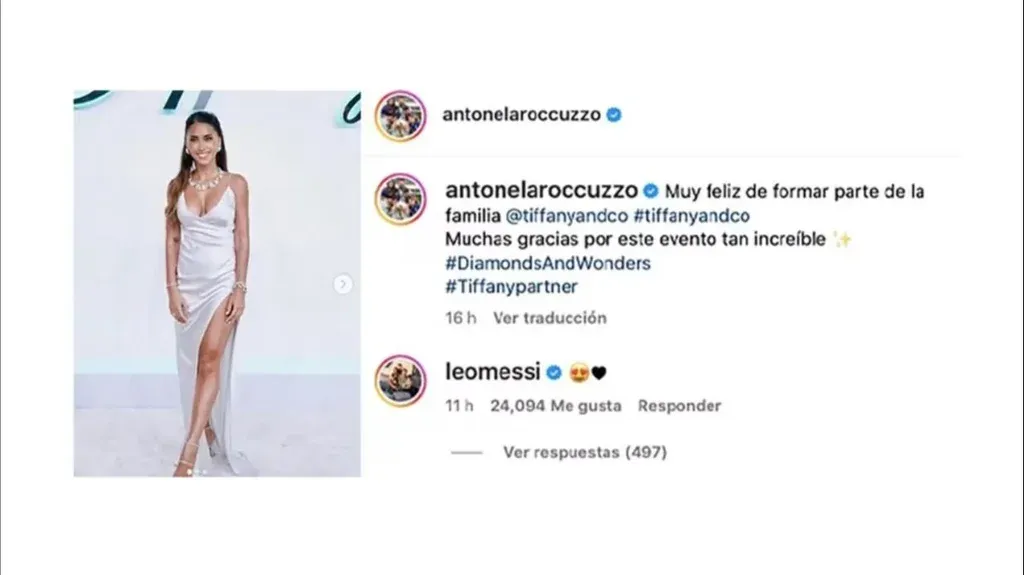 Roccuzzo compartió fotos suyas desde la alfombra roja, en un nuevo rol como embajadora de la reconocida joyería internacional Tiffany & Co.