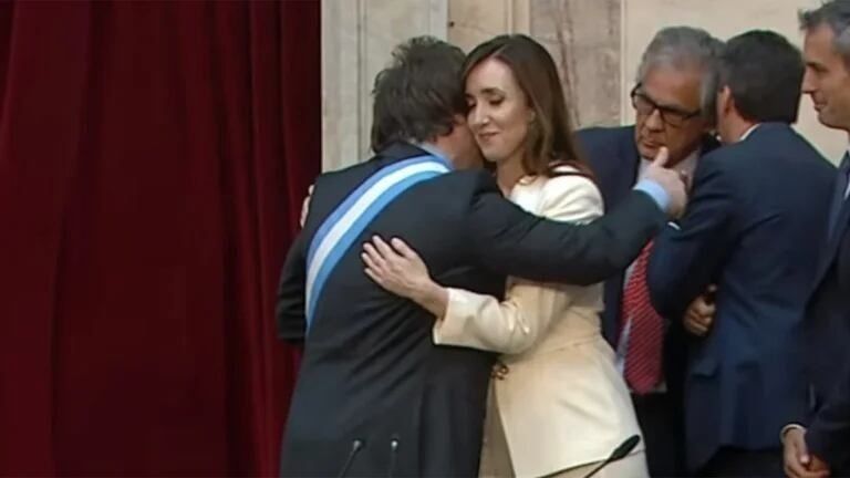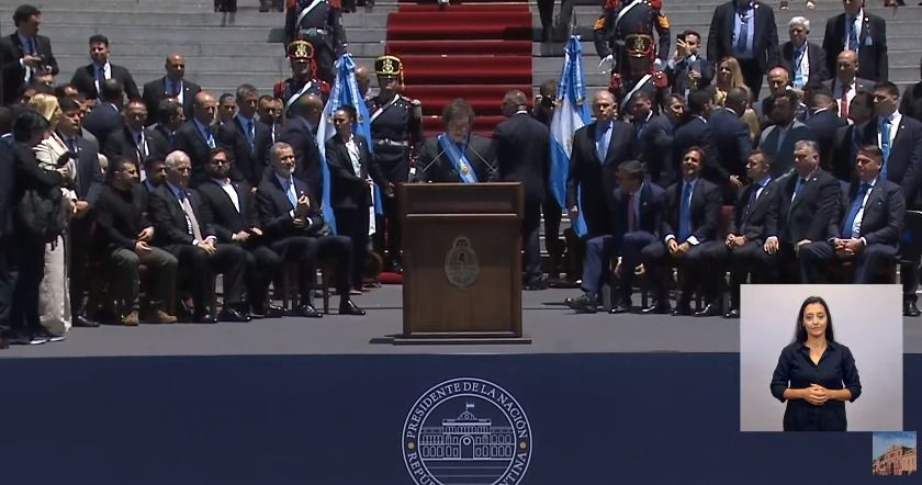 12:00 - Juramento ante el Congreso. El acto y la ceremonia de traspaso comenzará cuando la vicepresidenta saliente, Cristina Kirchner, le tome juramento a su par entrante, Victoria Villarruel, que luego quedará a cargo de la Asamblea Legislativa. Ella será la encargada de la jura al nuevo jefe de Estado. El Escribano Mayor de Gobierno leerá el acta correspondiente y, por último, se hará la transmisión de insignias, se firmará el Acta Notarial ante el Escribano General de la Nación y el presidente pronunciará un discurso como inicio de su mandato presidencial ante la Asamblea Legislativa. Luego Milei se moverá a las escalinatas del Congreso, donde dará un discurso frente al pueblo.
