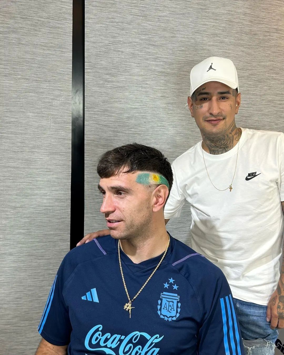 Martínez lucirá un peinado peculiar: la bandera argentina pintada en su cabello, ubicada arriba de su oreja izquierda. Este estilo audaz ya lo exhibió durante el Mundial de Qatar, específicamente en el partido contra Australia en los octavos de final, donde la selección argentina salió victoriosa por 2-1. En ese momento, el arquero reveló que era una apuesta con compañeros como Germán Pezzella, Marcos Acuña y Guido Rodríguez, y que la ganaron.