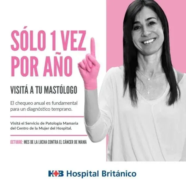 Cada año en Argentina, se diagnostican entre 15,000 y 20,000 nuevos casos de cáncer de mama, según datos oficiales. En el Mes de Lucha contra el Cáncer de Mama, que se conmemora en octubre, el Hospital Británico resalta la importancia de los exámenes regulares y las mamografías en su campaña "No le des la espalda a la Mamografía". Como parte de esta iniciativa, el hospital ofrece mamografías gratuitas a personas sin seguro médico, proporcionando 170 turnos en sus seis Centros Médicos.
