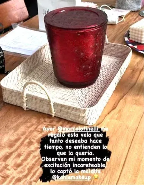 Marcelo Tinelli también compartió el momento en sus propias redes sociales, destacando el significado especial de la vela para Cande. "Esta vela vos la amabas y me encantó regalártela", escribió en una foto en la que le entregaba un gran velón rojo a su hija junto con una carta especial.