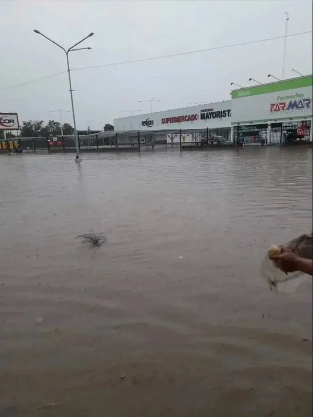El hecho delictivo fue registrado por un hombre que, al observar las inclemencias climáticas, decidió salir a pasear en kayak por la zona sin pensar que podía encontrarse con algo de estas características: gente con el agua hasta las rodillas saliendo del local con bolsas en sus manos repletas de medicamentos, cosméticos y productos de higiene.