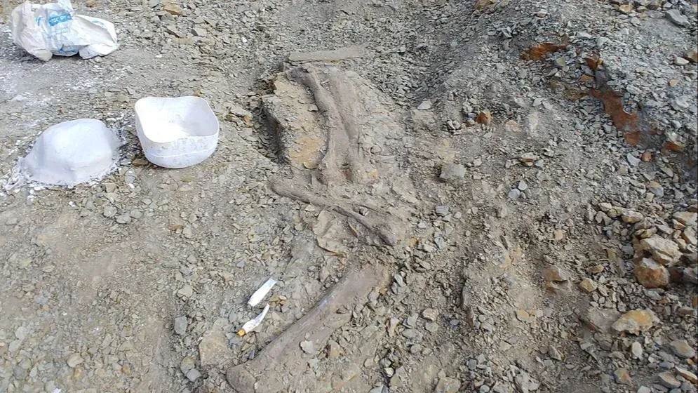 “El proceso de extracción fue muy minucioso e involucró a diez personas, ya que requirió embochonar o recubrir los restos con camisas de tela de arpillera y yeso para protegerlos antes de su traslado a los laboratorios del MEF”, cuenta Agustín Pérez Moreno, becario posdoctoral del Conicet en el Museo de La Plata y primer autor del trabajo.
