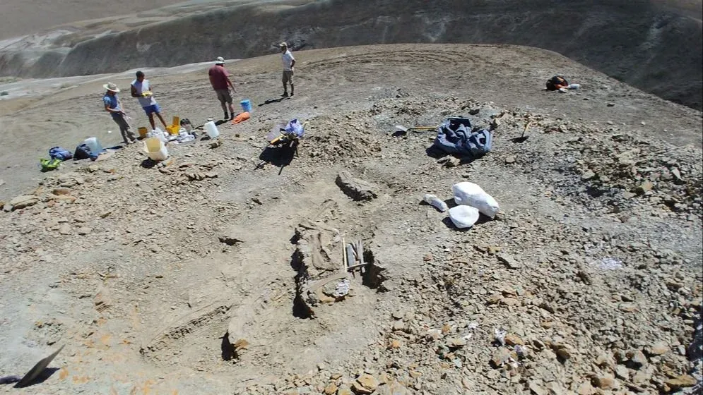 Científicos del Conicet hallaron los restos de un titanosaurio que habitó la Patagonia hace 66 millones de años. Foto: Vincent Brusca.