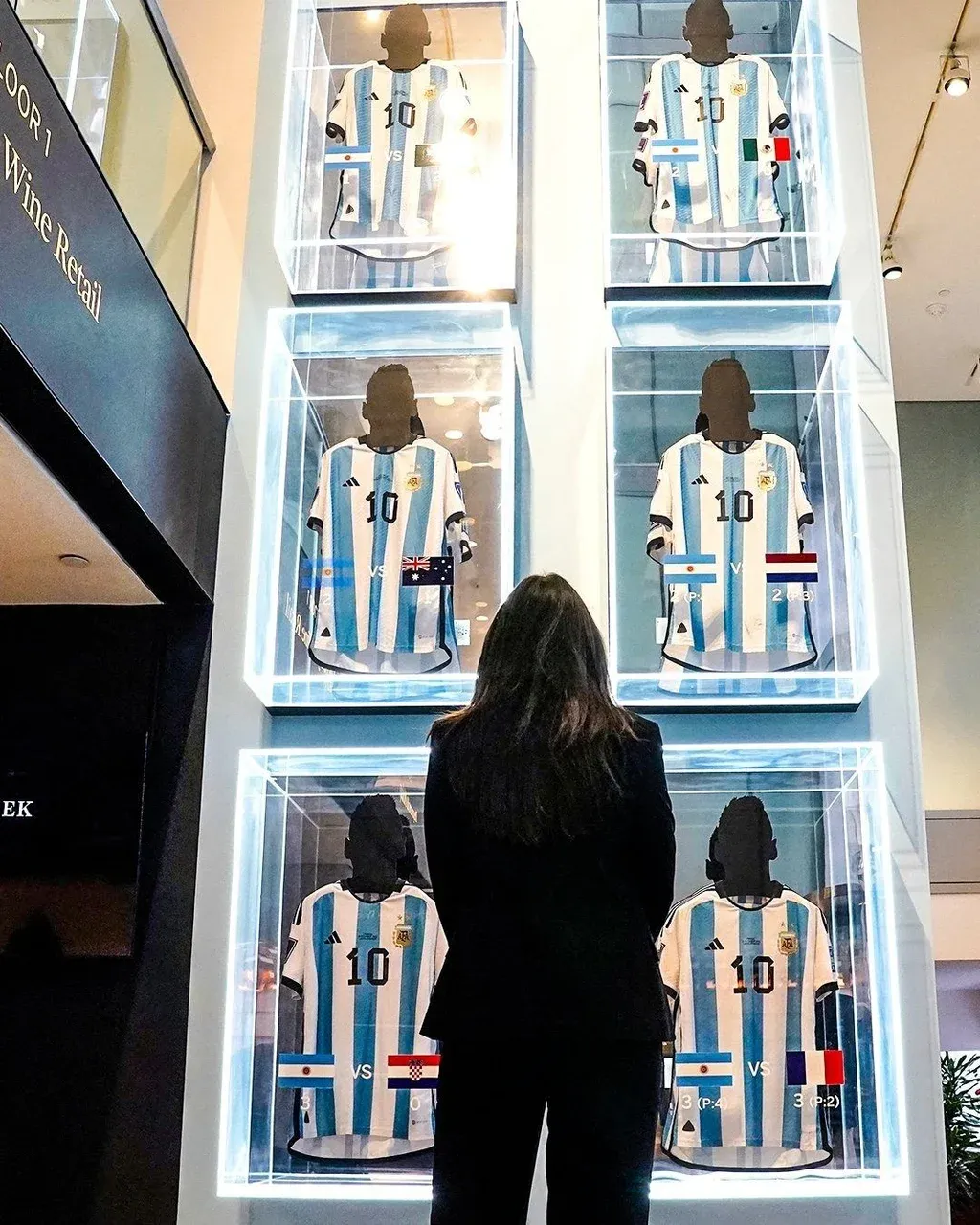 La sede de Sotheby's en Nueva York, acostumbrada a recibir obras de artistas cotizados y recuerdos personales de estrellas, ha dedicado dos semanas a exhibir estas seis camisetas albicelestes, enmarcadas con esmero en una pared del lobby.