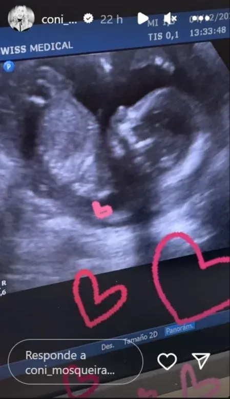 La pareja de Alejandro Fantino, Coni Mosqueira, publicó un video donde se ve el perfil de su futuro hijo durante una ecografía realizada este martes. La modelo compartió dos historias en las que se puede ver el monitor con la conmovedora imagen del pequeño. "Esa naricita", expresó la futura mamá en un gesto que cautivó a sus seguidores.