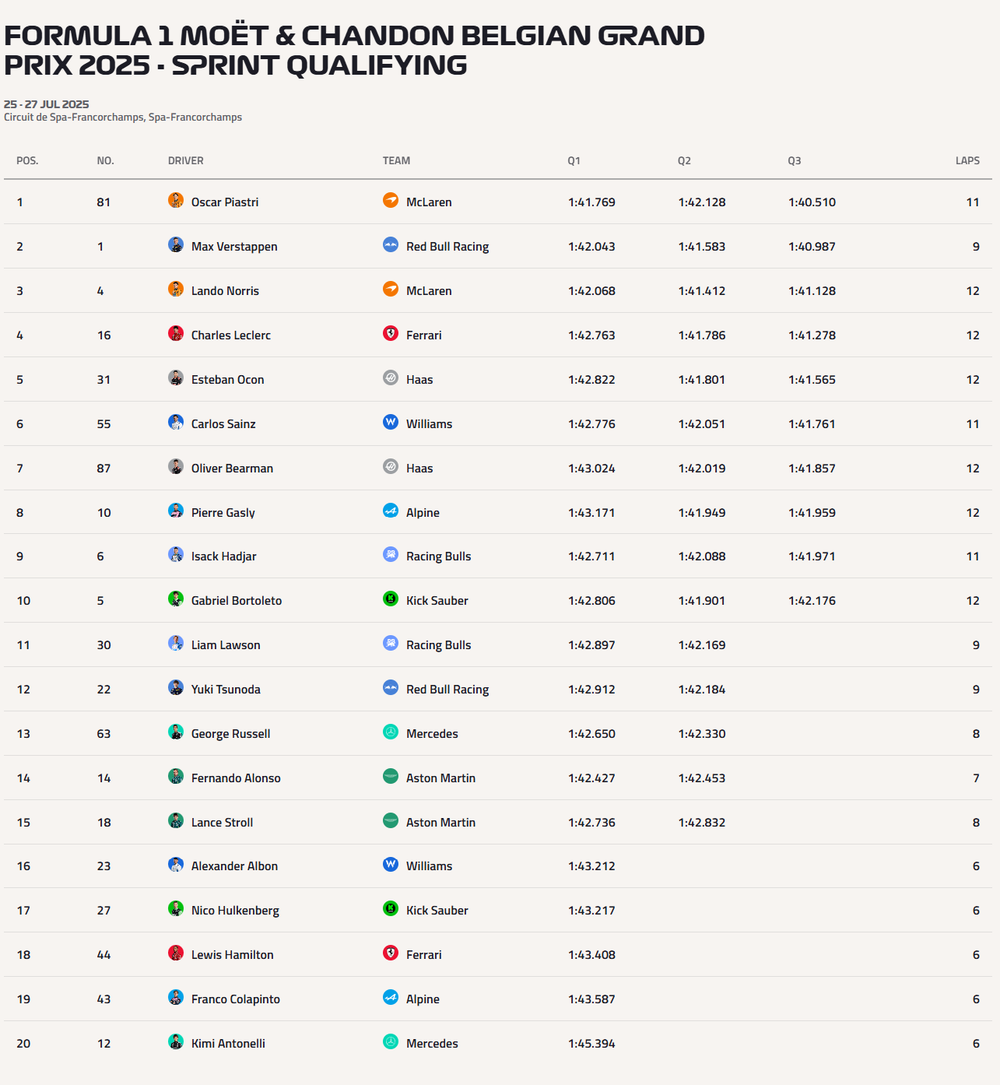 F1 EN VIVO | Salida para la carrera Sprint del GP de Bélgica