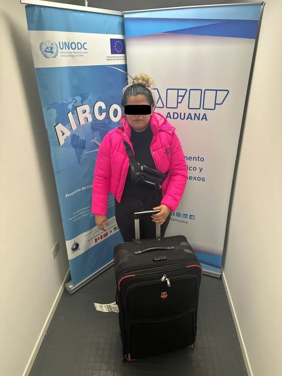 El 30 de junio esa misma mujer se presentó en el aeropuerto internacional de Ezeiza con el objetivo de viajar a Milán y se encendieron las alarmas. Tras realizar los controles de rutina, el personal aduanero descubrió que era una mula y llevaba 13.200 grs. de cocaína líquida impregnada en la ropa que tenía en la valija.