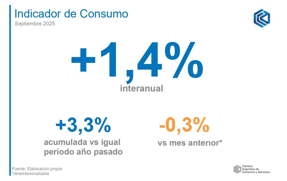 "La estabilización del nivel de precios ayuda a que la tendencia a la recuperación del consumo continúe en los dos últimos meses del año", indicó el informe de la CAC. Este desempeño resulta relevante si se considera que el tipo de cambio oficial avanzó 5,3% en el mismo período, lo que revela que el traslado a precios fue limitado, reflejando una menor sensibilidad de los precios frente a los movimientos del dólar.