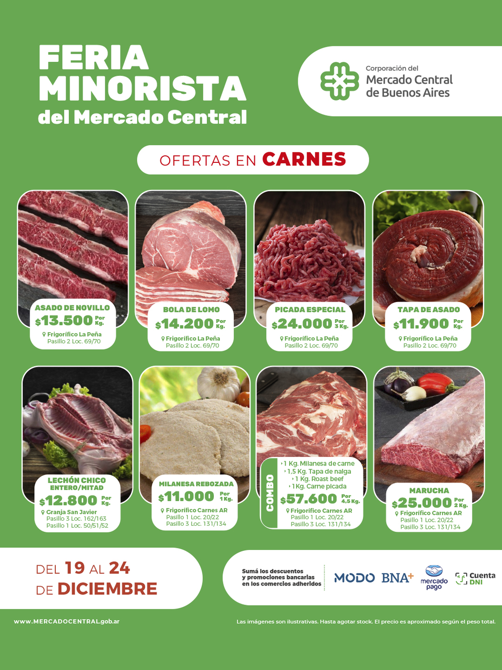 La Feria Minorista del Mercado Central de Buenos Aires puso en marcha el viernes 19 y con tiempo límite hasta el próximo miércoles 24 de diciembre nuevas ofertas en cortes de carne.