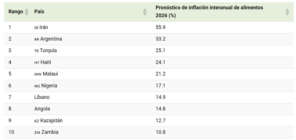 En el caso iraní, el organismo remarcó que “la depreciación de la moneda y las prolongadas presiones inflacionarias impulsaron la inflación alimentaria a niveles extremos en los últimos años”, y advirtió que el escenario para 2026 sugiere la continuidad de esas tensiones.