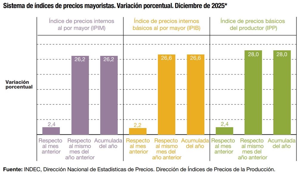 La inflación mayorista en 2025 fue de 26,2%, la más baja en ocho años