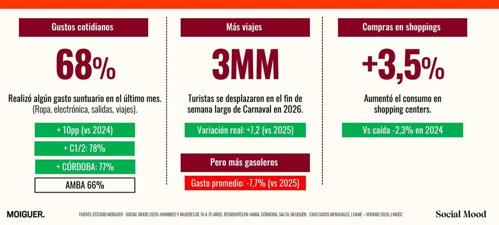 Mientras la macro empieza a mostrar señales de ordenamiento, la vida cotidiana sigue corriendo por otro carril. Esa es, en esencia, la foto que deja el último informe de Moiguer sobre el humor social en la Argentina: una economía que se estabiliza en los papeles, pero que todavía no logra traducirse en bienestar concreto para el consumidor.