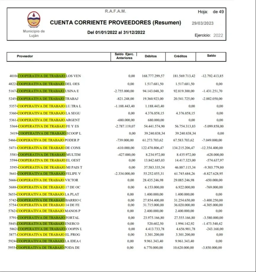 La documentación que prueba el cobro de fondos públicos por las cooperativas