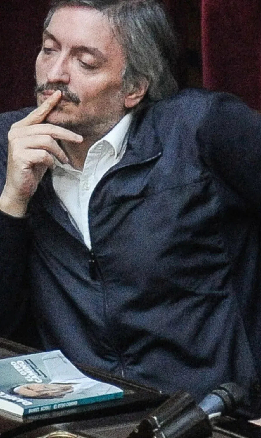 Qué curioso: el hijo de Cristina Kirchner tenía en su banca un viejo libro de Daniel Scioli, El otro camino.
