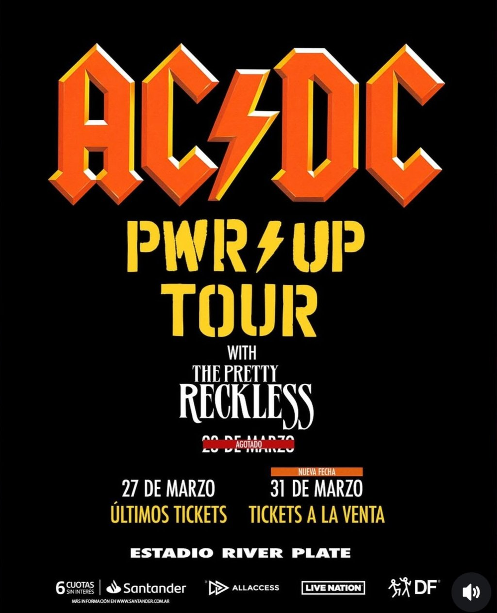 Las entradas para AC/DC en el Estadio River Plate de Buenos Aires se pueden comprar en la plaforma All Access.