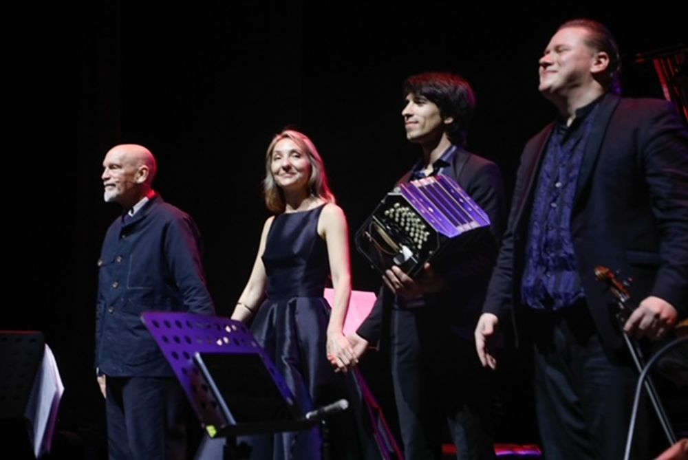 Estuvo acompañado por la pianista franco rusa Anastasya Terenkova, autora de la puesta junto a él, Andrej Bielow en violín y Fabrizio Colombo en bandoneón, quienes interpretaron tangos de Astor Piazzolla, entre otras obras, magistralmente.