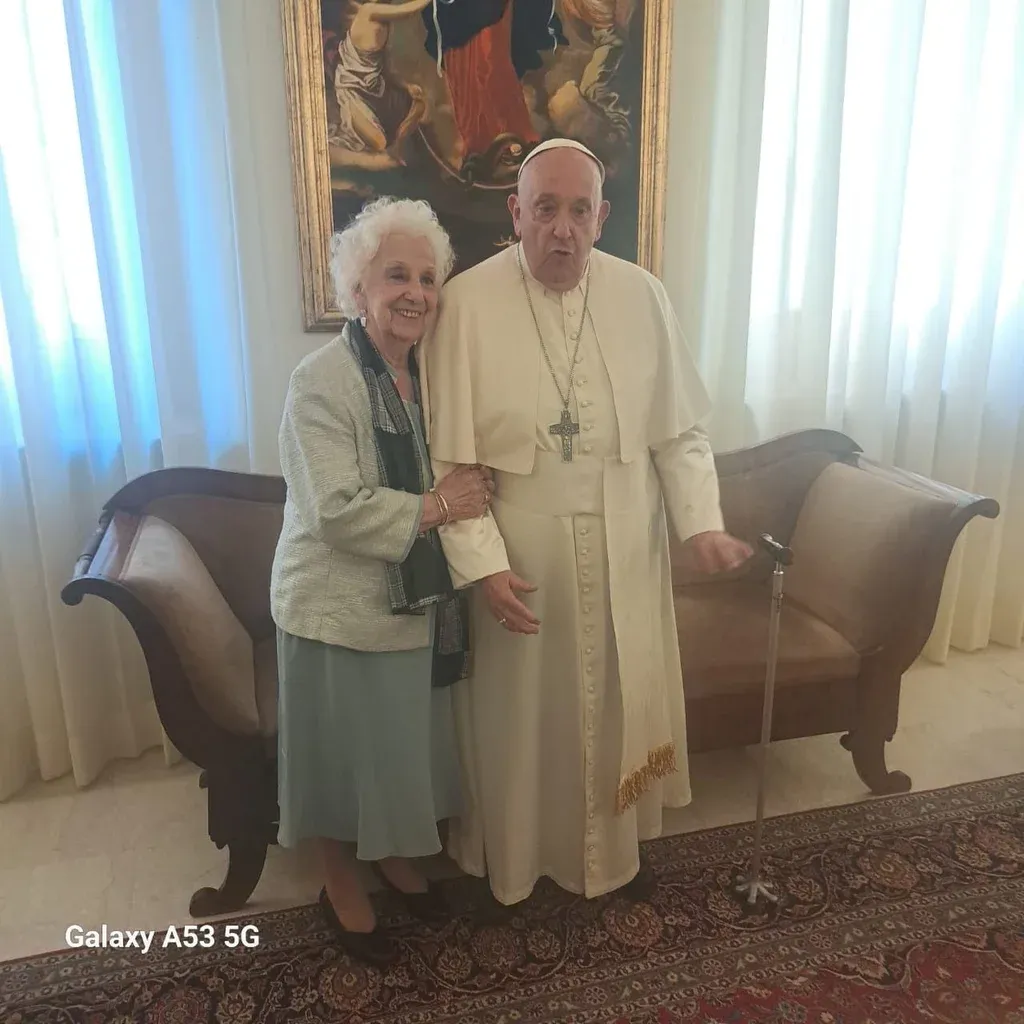 Estela de Carloto junto al Papa Francisco en el Vaticano