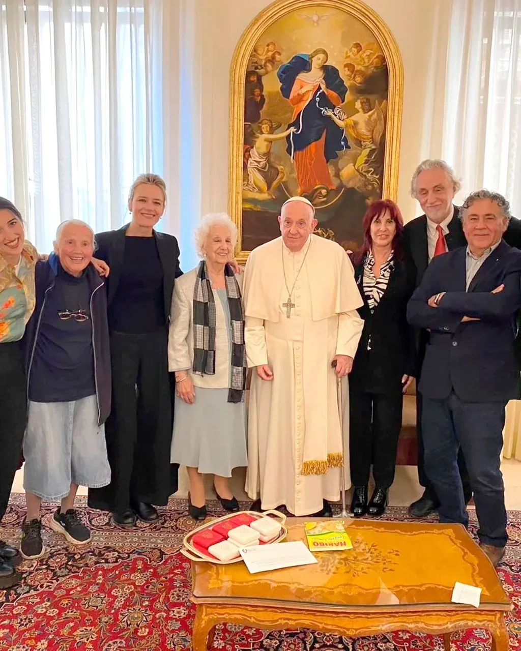 En ese marco, la referente de la lucha por los derechos humanos tuvo una audiencia privada con el pontífice, que se extendió más de lo previsto incluso por el propio grupo que participó del encuentro.