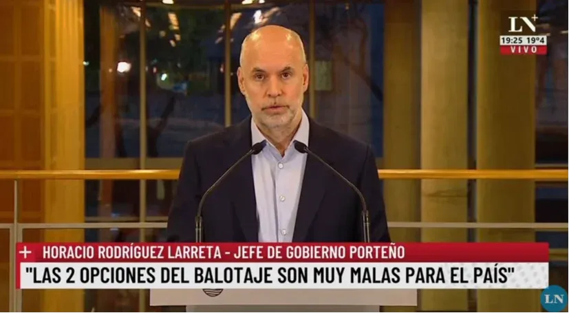 Horacio Rodríguez Larreta tomó distancia del apoyo que Patricia Bullrich le dedicó a Javier Milei de cara al balotaje que protagonizará frente a Sergio Massa. El jefe de gobierno porteño señaló: "Las dos opciones que tenemos para el balotaje son muy malas para los argentinos".