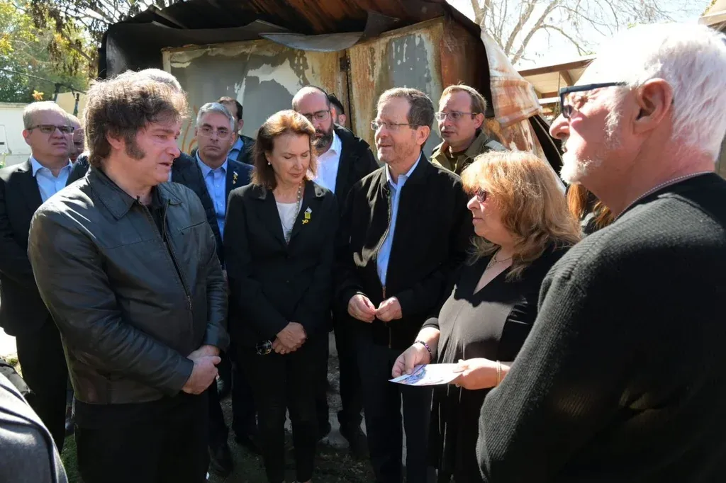 Javier Milei recorrió un kibutz atacado por Hamas junto al presidente israelí Isaac Herzog
