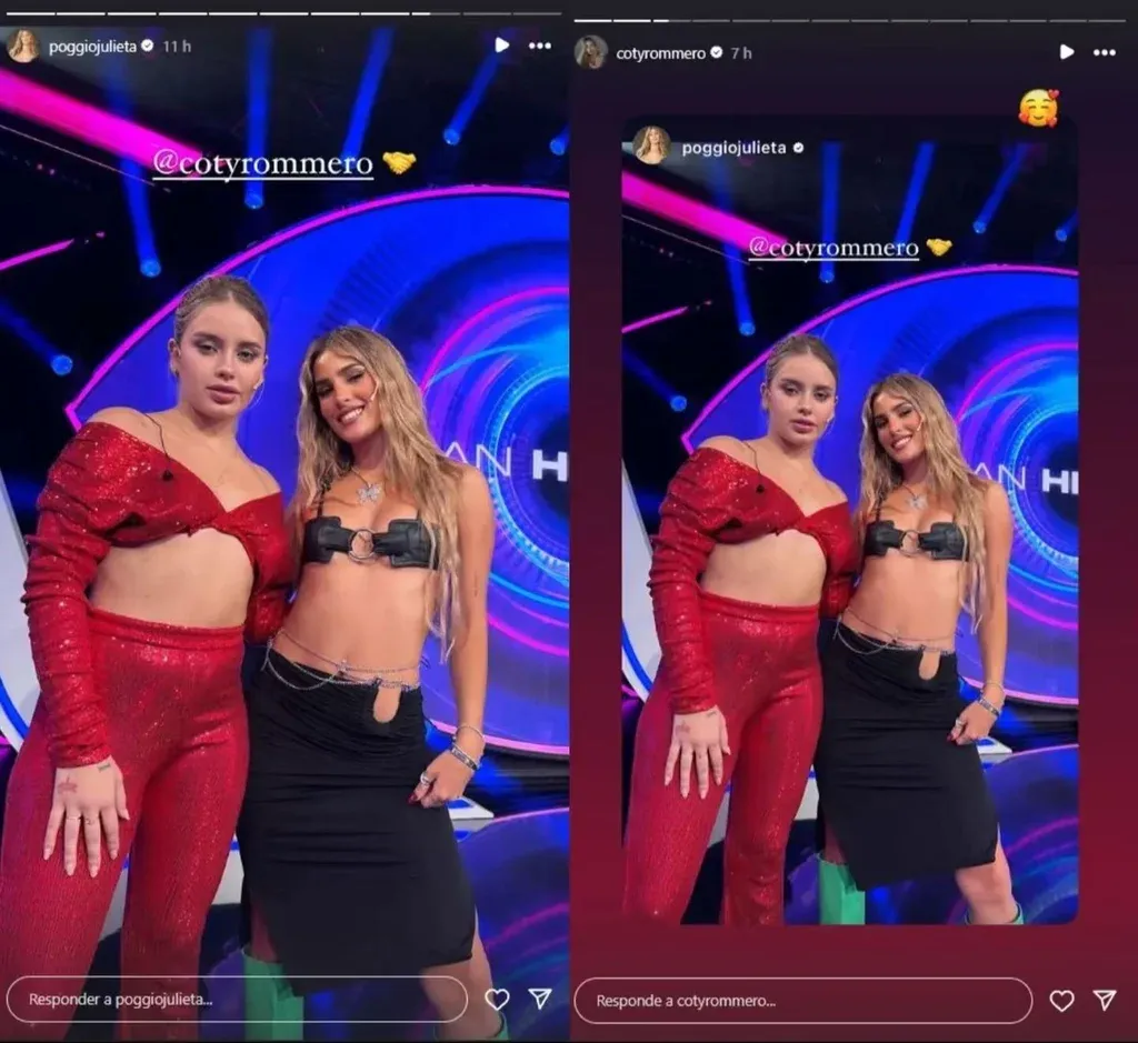 Después de la emisión del programa, Julieta publicó en sus historias de Instagram una foto en la que aparece sonriente junto a Coti. El gesto simbólico llegó con un emoji de apretón de manos. La respuesta de Coti fue igual de amigable, compartiendo la historia de Julieta y añadiendo emojis de corazones.