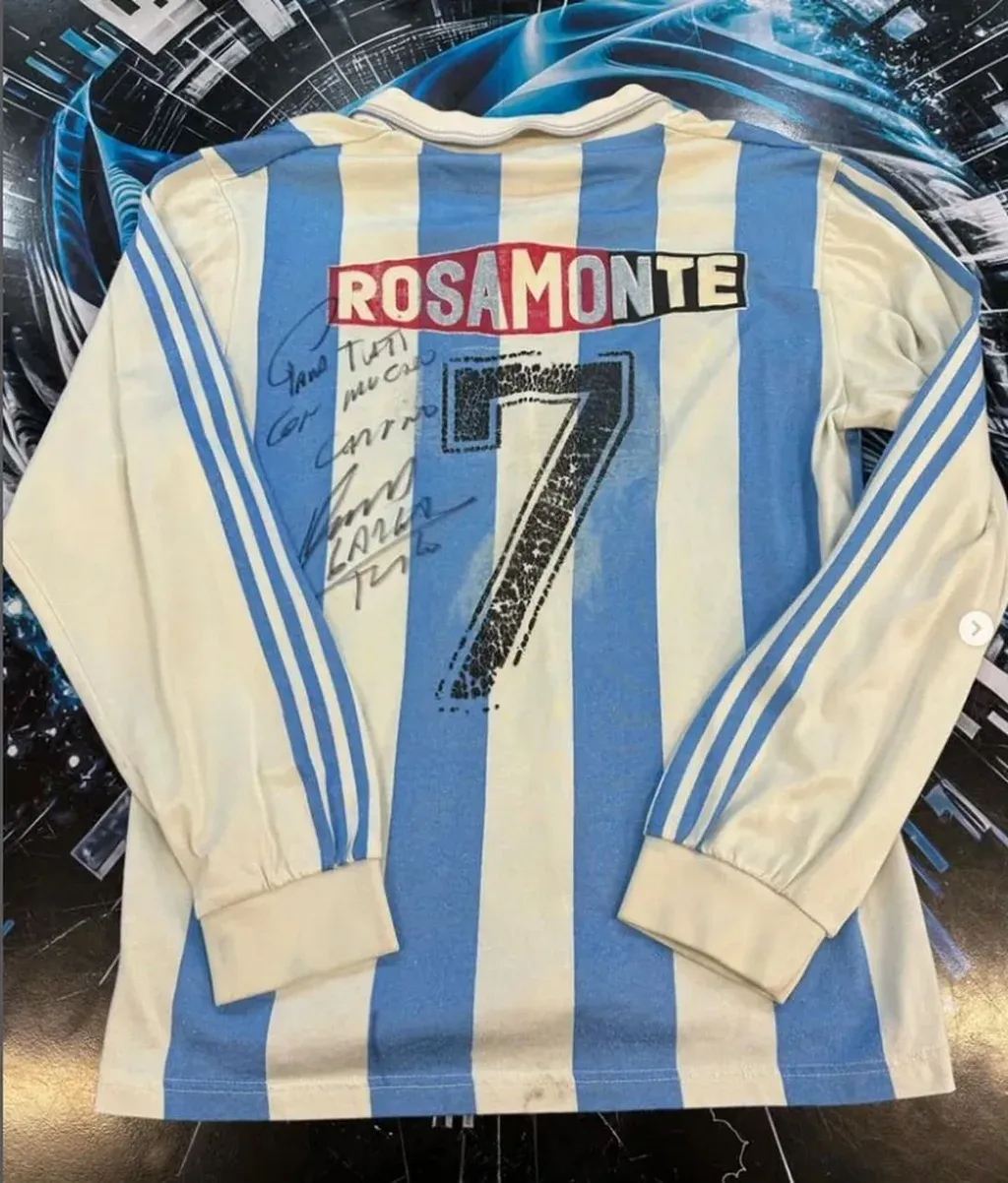 En el posteo, el vendedor chicaneó al Turco: “Camiseta de Racing 1995 usada y firmada por el jugador. Viene con un poco de gaseosa de pomelo”.