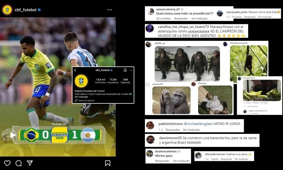 En la extensa comunicación difundida en su sitio web, informaron que el perfil de la CBF en Instagram, el más grande del mundo entre las confederaciones, sufrió violentos ataques racistas a lo largo de la semana. Los ataques incluyeron comparaciones de jugadores y aficionados brasileños con monos, así como ofensas al presidente de la CBF, Ednaldo Rodrigues, con comentarios peyorativos y faltas de respeto relacionadas con su etnia.