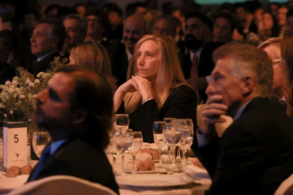 Cuando terminó, después de saludar a su par uruguayo Luis Lacalle Pou, Milei se fundió en un abrazo con Mauricio Macri, y fue buscando uno a uno a los integrantes de su gobierno que estaban entre el público: la secretaria general de la Presidencia Karina Milei, la ministra de Capital Humano Sandra Pettovello, la de Seguridad Patricia Bullrich, la canciller Diana Mondino, el ministro de Defensa Luis Petri, el vocero Manuel Adorni, el ministro de Economía Luis “Toto” Caputo, y el asesor Federico Sturzenegger, entre otros.