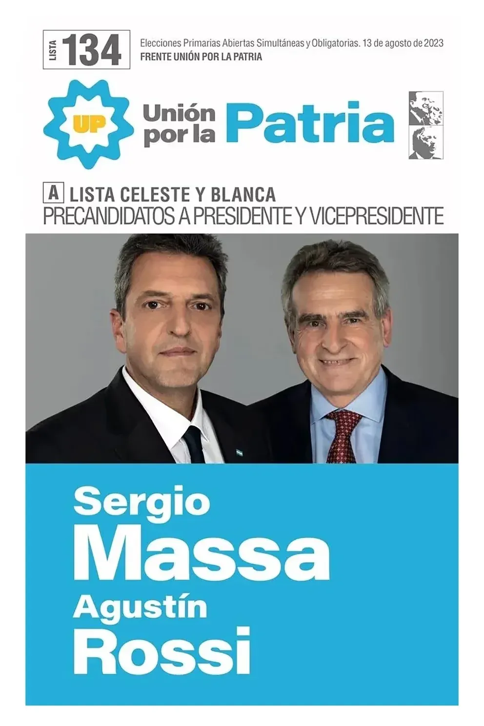 Lista A: Celeste y Blanca. Sergio Massa - Agustín Rossi