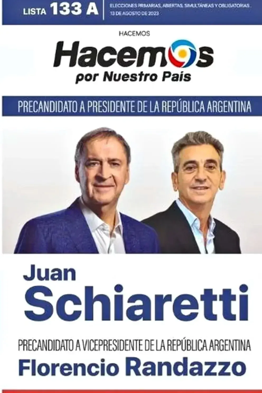Lista A: Hacemos por Nuestro País. Juan Schiaretti - Florencio Randazzo