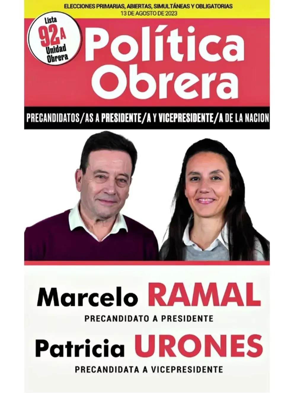 Lista Unidad Obrera - Marcelo Ramal - Patricia Urones
