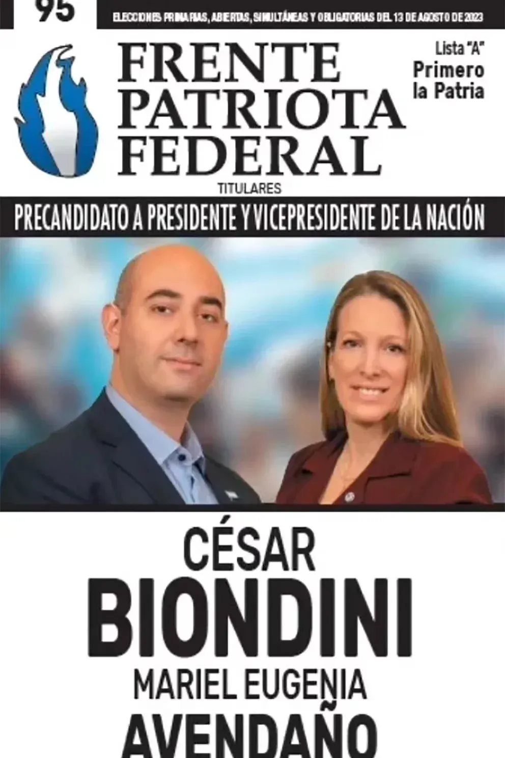 Lista Primero la Patria. César Biondini-Mariel Avendaño