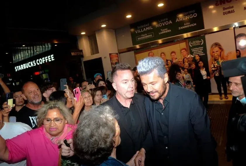 Marcelo Tinelli y el Chato Prada saludan a la gente a la salida del teatro
