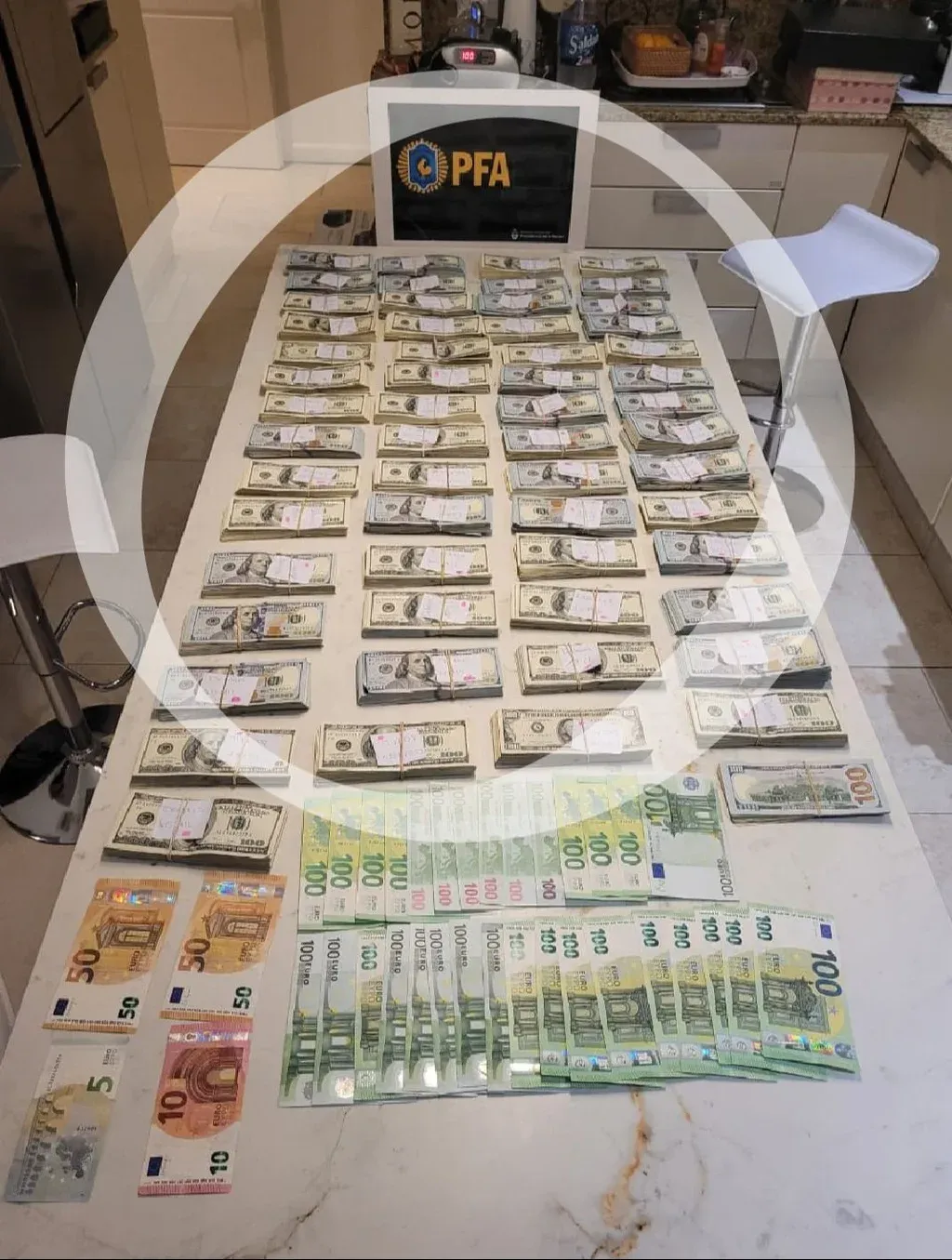 El allanamiento se llevó a cabo en una vivienda situada en un barrio cerrado donde vive Clérici y esa fue la suma encontrada por la Policía Federal en el operativo.