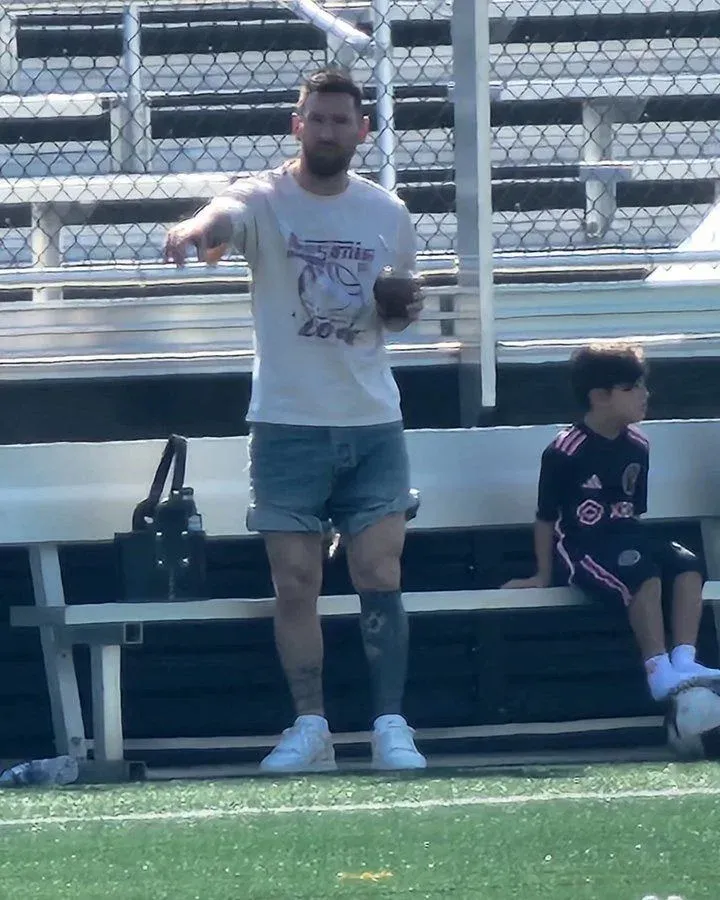 El crack argentino concurrió al entrenamiento del equipo Sub 12 del club de la Florida para ver a su hijo mayor, Thiago, integrante de la categoría.