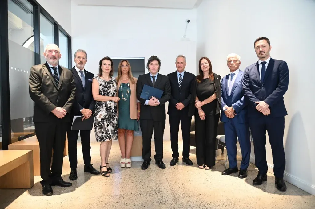 El presidente Javier Milei y los ministros de Capital Humano de la Nación, Sandra Pettovello; de Relaciones Exteriores y Culto, Diana Mondino; de Justicia, Mariano Cúneo Libarona; y de Defensa, Luis Petri; el jefe de Gobierno de la Ciudad Autónoma de Buenos Aires, Jorge Macri; y el presidente del Museo del Holocausto de Buenos Aires, Marcelo Mindlin, encabezaron hoy este solemne acto.