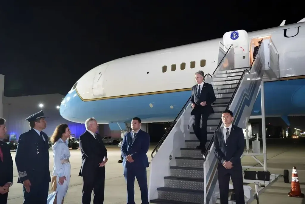 El secretario de Estado estadunidense Antony Blinken en Aeroparque ayer por la noche. Hoy se reunirá hoy con Javier Milei