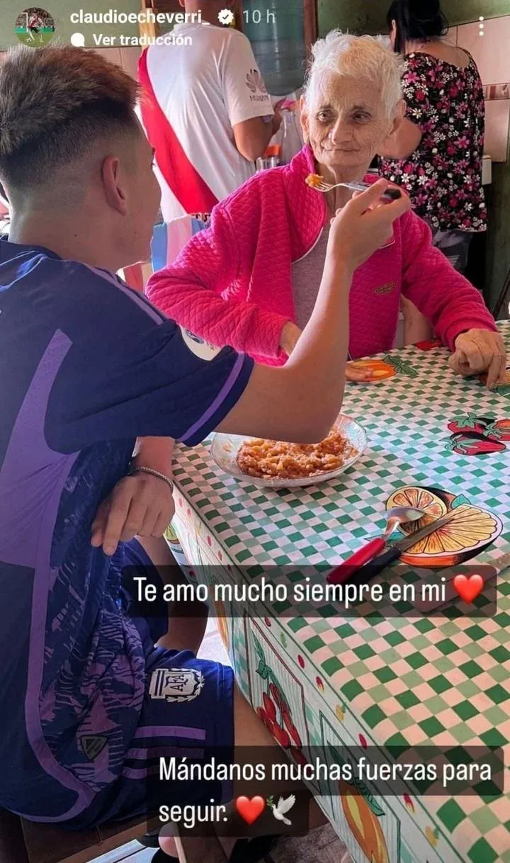 Minutos después, Echeverri compartió una fotografía del reencuentro que tuvo con su abuela en su hogar de Villa Río Negro, después de participar en el Sudamericano Sub 17 de Ecuador en abril de este año, añadiendo: "Te amo mucho, siempre en mi corazón. Mandanos fuerzas para seguir".