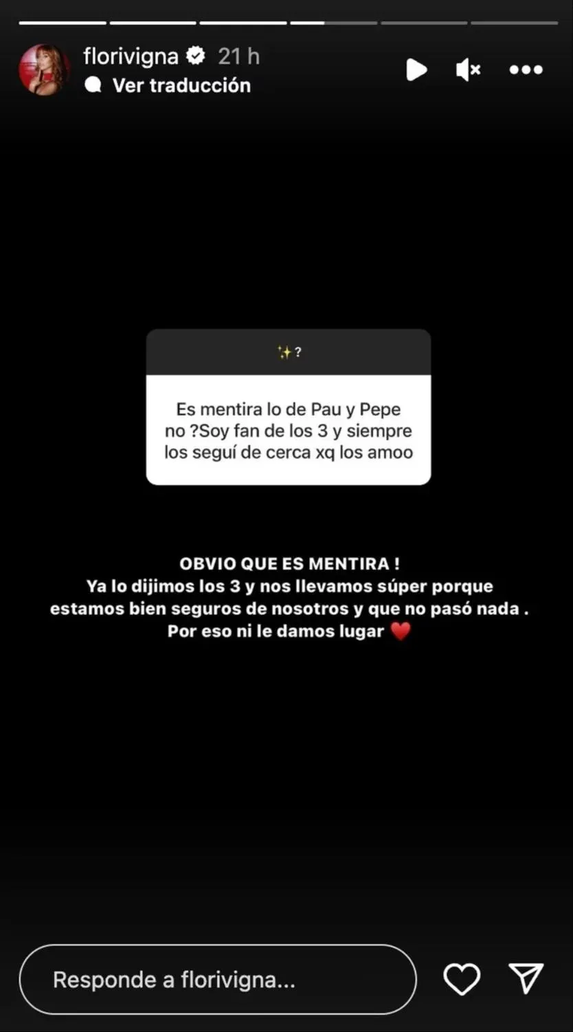 La respuesta de Flor Vigna en Instagram