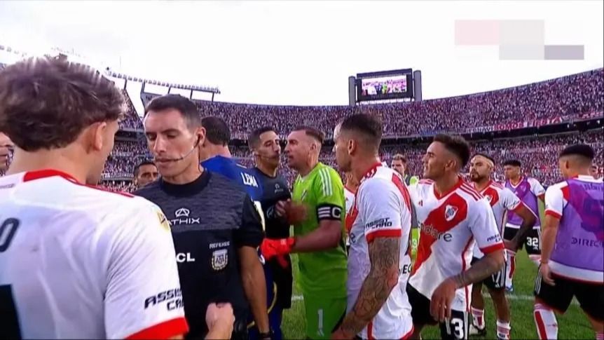 El momento en que Armani le da un "cortito" a Lema al finalizar el superclásico en el Monumental