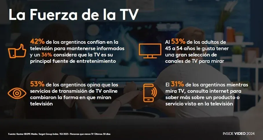 - Un 42% de los argentinos confía en la televisión como medio para mantenerse informado y a su vez el 36% lo considera su principal fuente de entretenimiento.