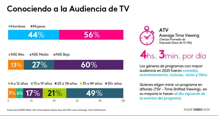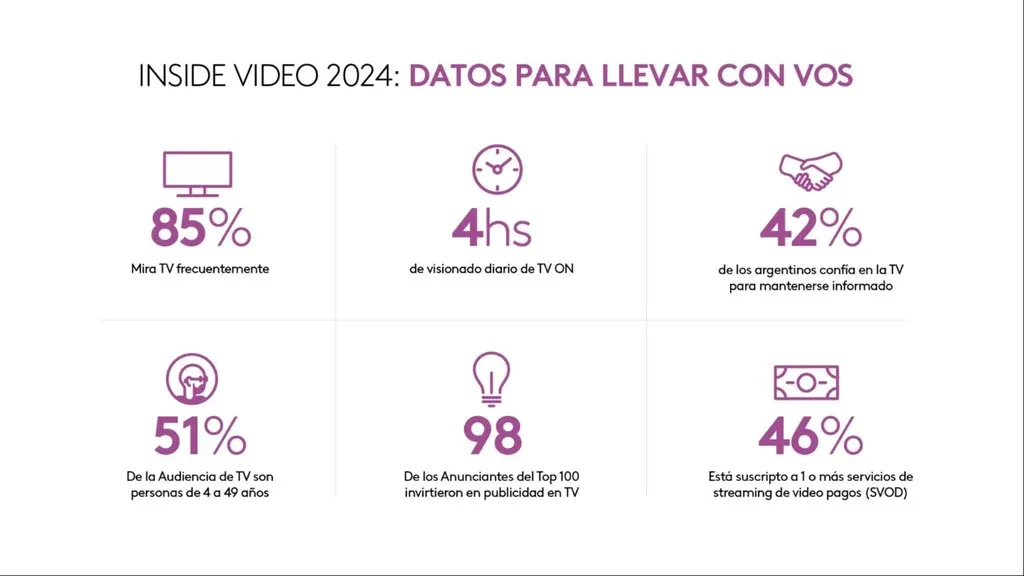 El interés por los contenidos audiovisuales continúa creciendo en Argentina y la televisión se afianza como el centro de información, emoción y entretenimiento del hogar. La oferta de contenidos y nuevos formatos se multiplica, con una mayor cantidad de pantallas que acompañan a las personas en todo momento. Los argentinos usan múltiples pantallas de manera cotidiana: