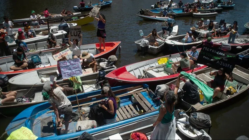 Télam Protesta en el río Tigre por falta de luz