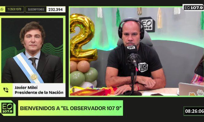 Javier Milei con Luis Gasulla en el día del cumpleaños de El Observador 107.9: "Para mitad del año que viene la inflación va a ser historia" En el festejo del segundo aniversario de El Observador 107.9, Javier Milei habló sobre el rumbo económico del país, de su vínculo con el papa Francisco, entre otros temas. Javier Milei sostuvo que la economía argentina crece al 10% Santiago Caputo le pone como condición al PRO en la negociación que asegure los vetos de Javier Milei