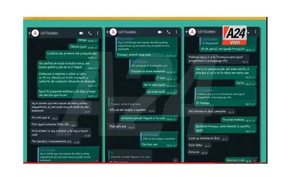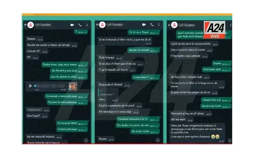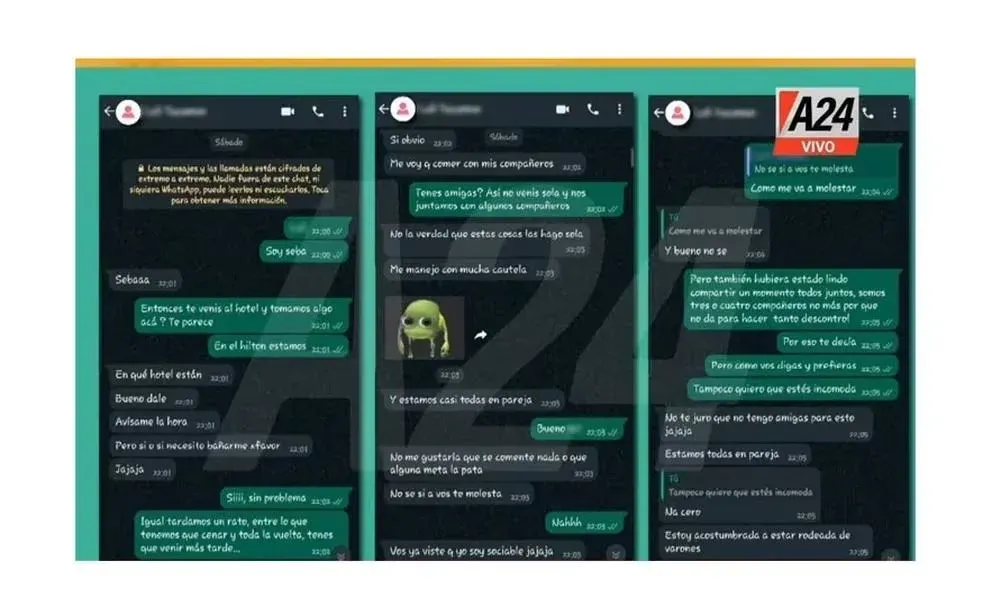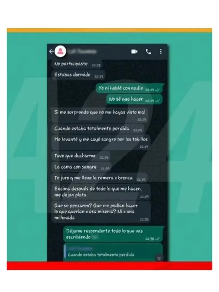 El primer intercambio, antes del encuentro en el hotel, revela la claridad de la víctima al establecer límites y expresar su negativa a tener relaciones con múltiples personas. Respecto al consumo de alcohol, se destaca que los futbolistas proveían cerveza, mientras que la presunta víctima aportó fernet.
